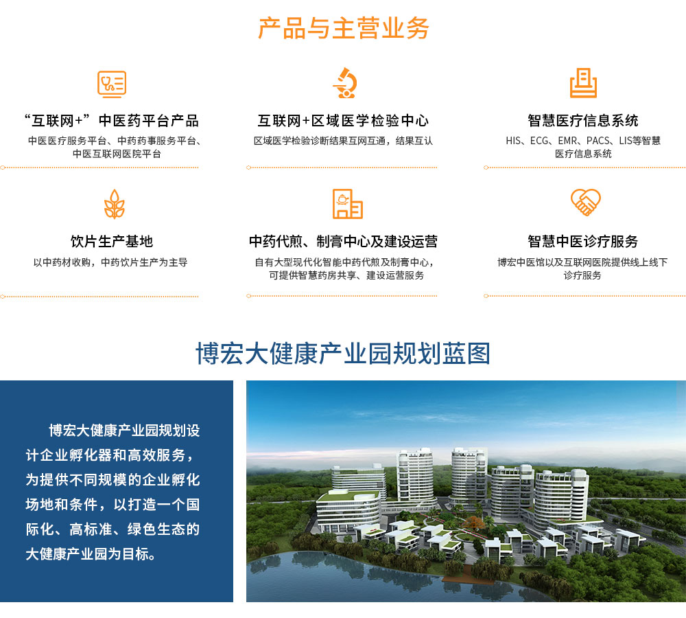 以人工智能、互联网和大数据技术为核心,开发出“互联网+”医疗、医药应用软件产品,包括方剂宝中医药服务平台及其微信服务号,并且对接药事服务,构建起“互联网+”中医医疗服务平台和“互联网+”中药药事服务平台两大主营业务。